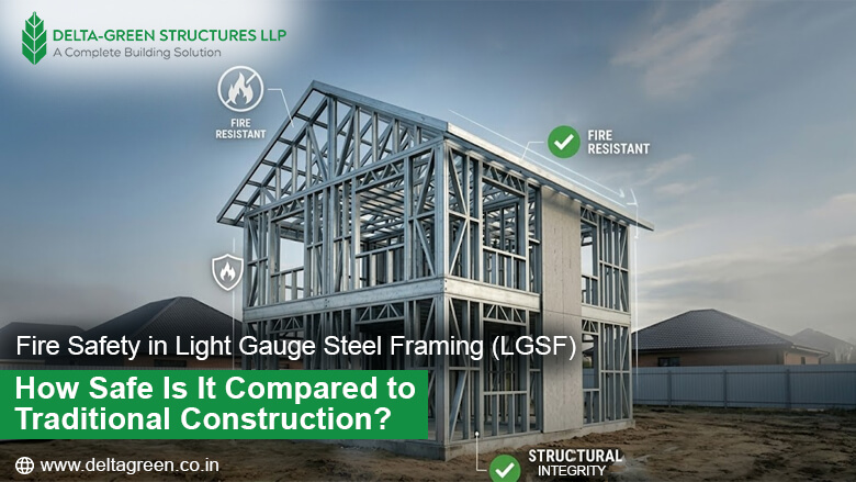 Fire Safety in Light Gauge Steel Framing (LGSF): How Safe Is It Compared to Traditional Construction? When you build, you’re not just creating a structure—you’re protecting lives inside it. Fire safety is one of those aspects people often assume is “handled.” But in reality, the materials and methods you choose can make a life-saving difference. Today, with modern construction evolving rapidly, Fire Safety in Light Gauge Steel Framing (LGSF) has become a topic worth serious attention. So, how does LGSF really perform in a fire? And is it actually safer than traditional brick-and-concrete construction? Let’s break it down in a way that truly matters. Understanding Fire Behavior in Buildings A fire doesn’t spread slowly—it escalates fast. Within minutes: Temperatures can rise beyond 800°C Weak materials start failing Smoke becomes a major threat In such situations, the strength of a building lies not just in standing tall, but in how long it can resist damage and allow safe evacuation. This is exactly where Fire Safety in Light Gauge Steel Framing begins to stand out. What Makes LGSF Different? Unlike traditional construction, LGSF is not just about steel—it’s a complete engineered system. At Delta Green Structures, every LGSF project is designed with precision, ensuring that safety is not added later, but built into the structure from the start. Let’s look at what makes it fire-resilient. 1. Steel: Strong, Stable, and Non-Combustible One of the biggest advantages of LGSF is simple: Steel does not burn. Unlike wood or other materials: It doesn’t fuel the fire It doesn’t produce smoke It doesn’t accelerate flame spread This gives fire-resistant steel framing a clear edge in preventing fire from growing uncontrollably. 2. The Real Shield: Fire-Resistant Layers Here’s something many people don’t realize— Steel in LGSF is always protected with layers like: Gypsum boards Cement boards Fire-rated insulation These act as thermal barriers, delaying heat from reaching the steel core. This dramatically improves steel frame fire resistance, allowing structures to maintain stability for longer durations. In comparison, traditional materials may resist fire—but they can crack, weaken, or even collapse without warning. 3. Engineered Fire Protection, Not Guesswork One of the strongest aspects of Fire Safety in Light Gauge Steel Framing is that everything is pre-planned. Modern LGSF systems include: Fire-rated wall assemblies Compartmentalized layouts to stop fire spread Special coatings that expand under heat This level of fire protection in steel structures ensures that fire doesn’t travel easily from one area to another. With advanced machinery and automated processes, Delta Green Structures ensures consistency in every component—something that’s hard to guarantee in traditional on-site construction. LGSF vs Traditional Construction: A Practical Comparison Aspect Traditional Brick & Concrete Light Gauge Steel Framing (LGSF) Fire Resistance Naturally fire-resistant to an extent Non-combustible structural system Heat Behavior Slower heat penetration Controlled and tested fire performance Structural Response in Fire Can crack or spall under extreme heat Predictable structural behavior under fire conditions Safety During Emergency Structural damage can be unpredictable Faster evacuation due to lightweight design Post-Fire Repair Expensive and time-consuming repairs Easier and quicker to repair after fire incidents Design Requirement Conventional methods, less engineered fire planning Requires proper design and fire-rated materials (ensured by professional manufacturers) Fire Safety in Prefabricated Buildings: A Hidden Advantage Prefabrication often gets misunderstood, but in reality, it enhances safety. Why? Because everything is: Designed in advance Manufactured under strict quality control Installed with precision This reduces human error, making fire safety in prefabricated buildings more reliable compared to conventional construction methods. At Delta Green Structures, this approach ensures that every structure meets high safety standards without compromise. Fire Ratings & Smart Design: Where Every Second Counts Fire resistance is not just a technical number—it’s time that can save lives. LGSF systems can be designed to withstand fire for: 30 minutes 60 minutes 90 minutes 120 minutes or more And those minutes? They mean more time to react, more time to evacuate, and far less risk of sudden failure. That’s what makes Fire Safety in Light Gauge Steel Framing not just flexible—but dependable across different types of buildings. But here’s where it gets even smarter. Fire safety isn’t only about how long a structure can resist fire—it’s about how intelligently it handles it. Modern LGSF designs are built with: Sealed joints that stop smoke from silently spreading Fire stops within walls and floors to contain flames Clearly planned escape routes for faster, safer exits This is where design meets real-world safety. Because when fire-resistant building materials work together as a system—not separately—you don’t just get protection, you get control, predictability, and peace of mind. Why Modern Builders Are Choosing LGSF Across India, especially in regions with challenging climates, construction needs to be both strong and safe. Builders are choosing LGSF because it offers: Speed without compromising safety Precision in fire-resistant design Better performance during emergencies With its expertise in diverse terrains and conditions, Delta Green Structures is helping set new benchmarks in safe construction practices. Beyond Structures: It’s About People At the end of the day, fire safety is not just about buildings. It’s about: Families sleeping peacefully Employees working safely Communities staying protected A well-designed LGSF structure gives people something invaluable—time to respond, time to escape, and peace of mind. Final Verdict: 
